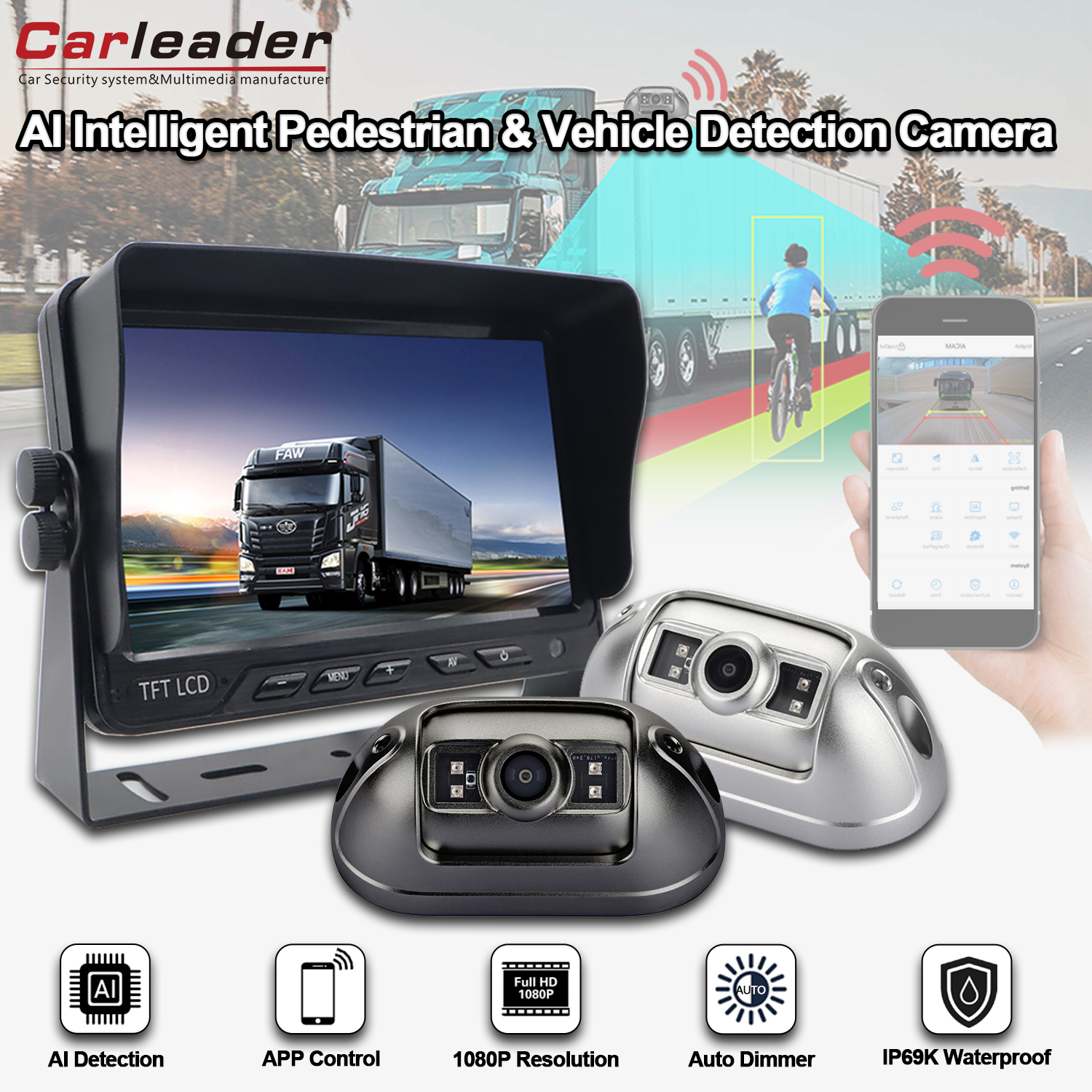 دعم إعداد معايرة الذكاء الاصطناعي مع الهاتف المحمول عبر WIFIقائد السيارةAI BSD نظام كاميرا كشف المشاة والمركبات نظام BSD عالي الأداء مقاس 7 بوصات يدعم تقنية AI BSD للكشف عن المشاة والمركبات وإنذار السائق. كاميرا مزودة بوحدة WIFI بمنفذ USB، تسمح للمستخدم بضبط معايرة وظيفة الذكاء الاصطناعي والإعداد الأساسي للكاميرا مع الهاتف المحمول عبر اتصال WIFI، بما في ذلك خيار الدقة،معايرة منطقة الكشف، ونوع صوت التنبيه وحجمه، وحساسية مشغل الكشف، وخيار كائن الكشف، وما إلى ذلك. ساعد المستخدم على ملاءمة سيارته بشكل أفضل من خلال الضبط.