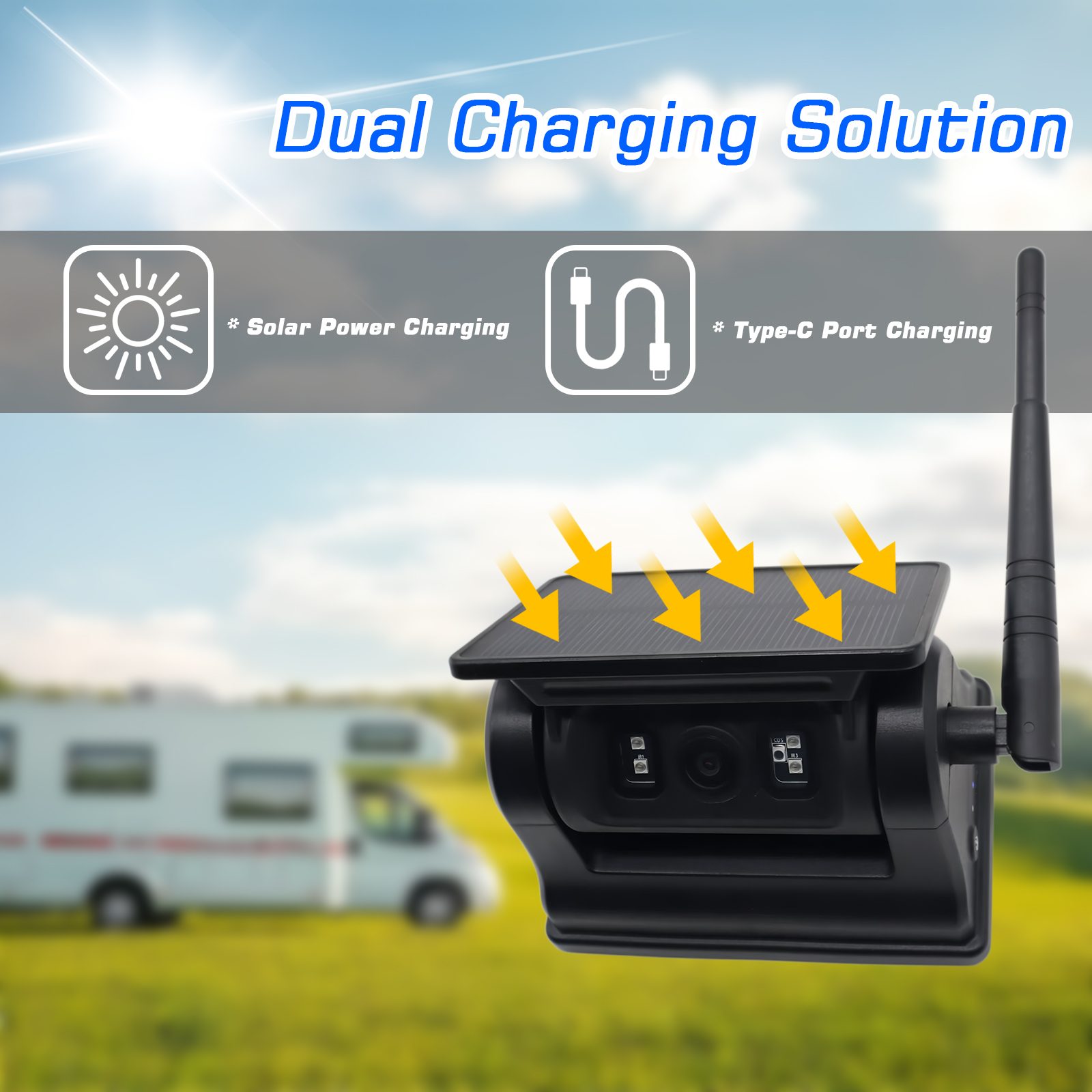 الطاقة الشمسية: مدمجة بطارية قابلة لإعادة الشحن بسعة كبيرة 10500 مللي أمبير، تدعم الطاقة الشمسية ومنفذ شحن من النوع C لإعادة الشحن