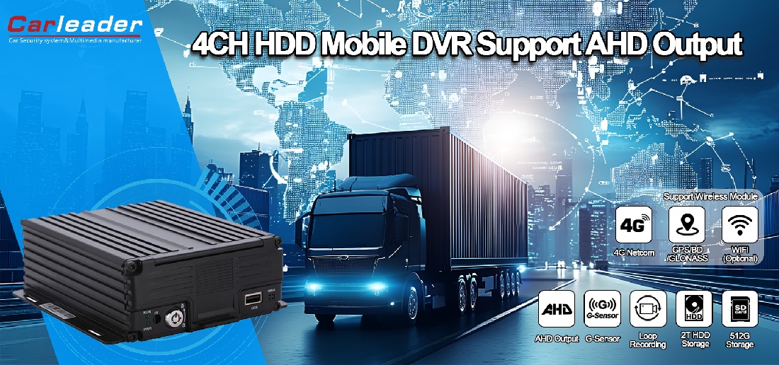 قائد السيارة4CH 1080P HDD Mobile DVR يدعم مخرج AHD مثالي لإدارة الأسطول وتتبعه، وأمن النقل العام، وإنفاذ القانون ومركبات الطوارئ، والخدمات اللوجستية ونقل البضائع، وسلامة المركبات الخاصة والتجارية