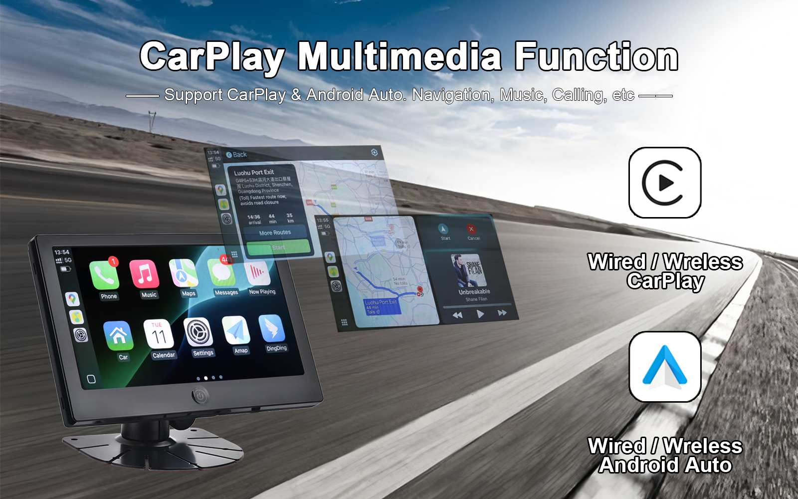 اتصال مزدوج - يدعم كلاً من CarPlay وAndroid Auto، مع خيارات اتصال سلكية ولاسلكية لتكامل سلس مع الهاتف الذكي.