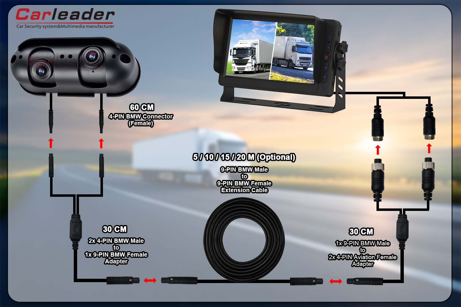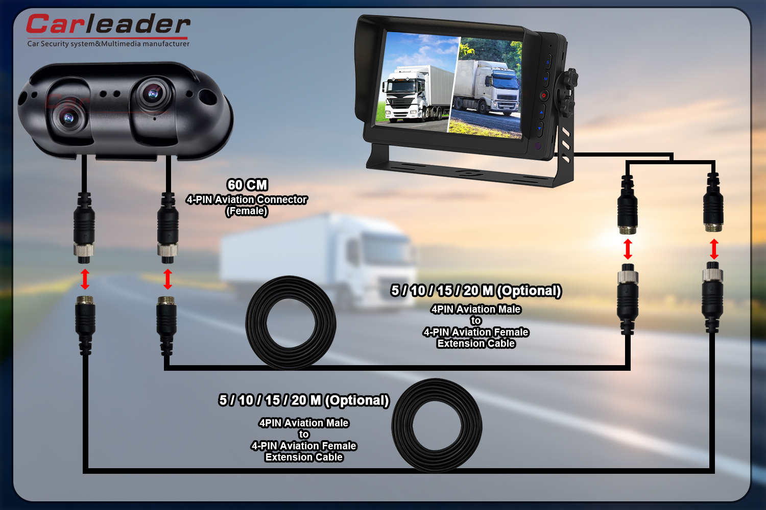 ستقدم شركة Carleader حلين مختلفين للأسلاك لكاميرا عكسية Starlight AHD ذات العدسة المزدوجة شديدة التحمل، لتناسب احتياجات الأسلاك المختلفة: