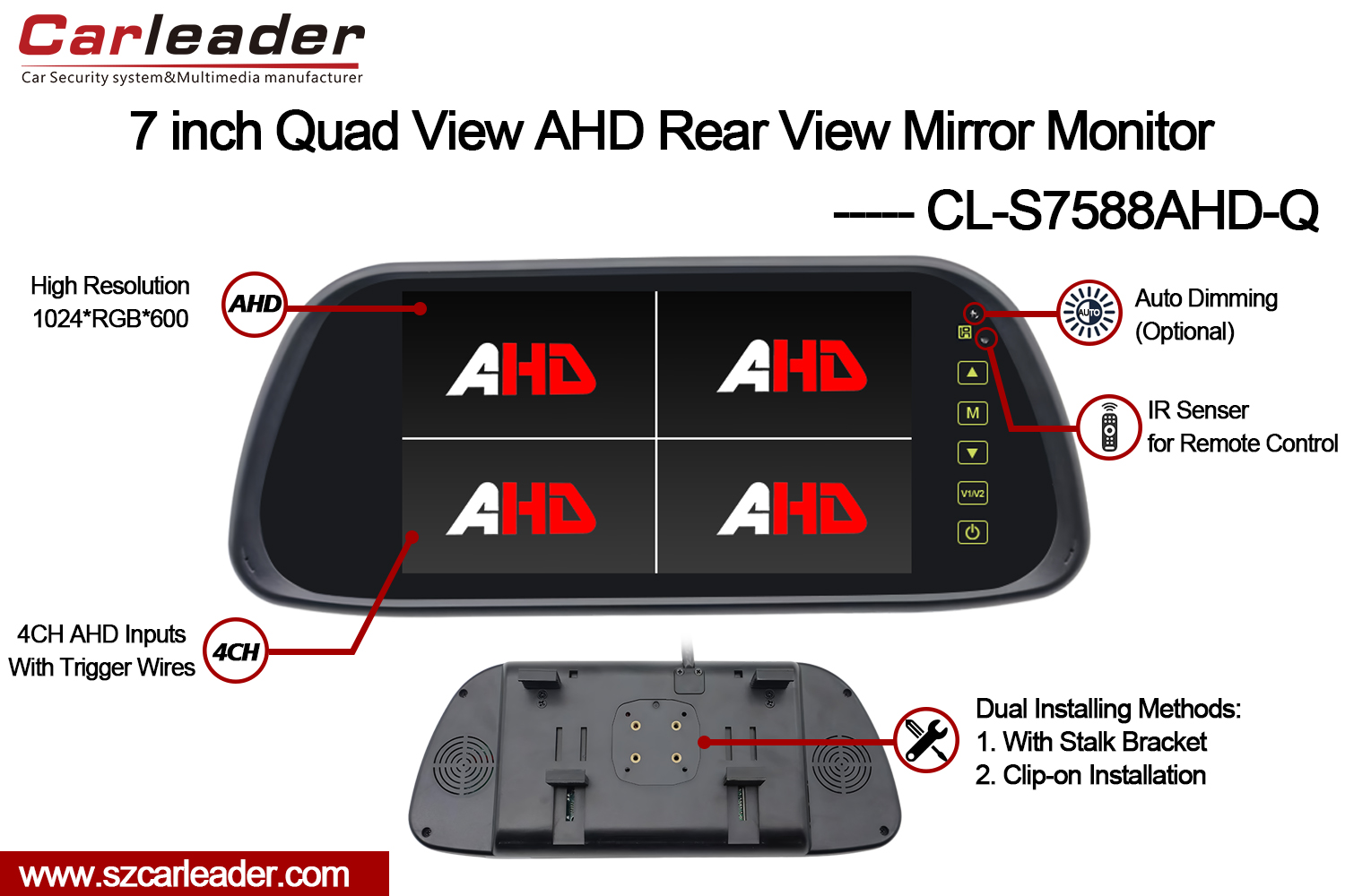 لماذا تختارشاشة مرآة الرؤية الخلفية Carleader مقاس 7 بوصة 4CH رباعية AHD تدعم التثبيت المزدوج?