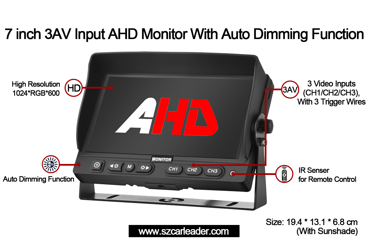 مثالي لإدارة الأسطول أو مراقبة الأمان أو الاستخدام الصناعي، Carleaderشاشة احتياطية للمركبة بمدخلات 7 بوصة 3CH AHDيجمع بين الموثوقية والتنوع والابتكار الذي يركز على المستخدم في شكل مضغوط.