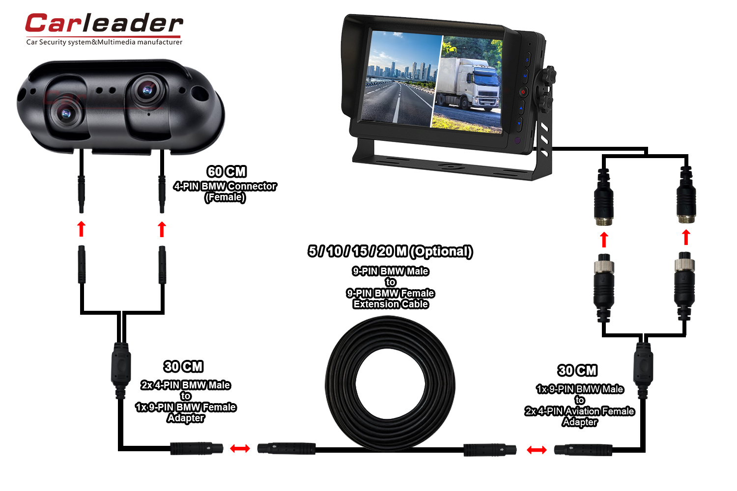 IP69Kكاميرا Starlight AHD ذات العدسات المزدوجة شديدة التحمل، كاميرا AHD ذات أدوات خاصة ذات جودة ممتازة ومصممة حديثًا، مدمجة مع عدسة مزدوجة في كاميرا واحدة، وزاوية العدسة قابلة للتعديل بشكل منفصل، مما يسمح للمستخدم بمشاهدة الرؤية القريبة والبعيدة على نفس الشاشة.